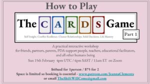 When we put the core needs identified by Self-Determination Theory together with the core needs underpinning Human Rights we get a potent new tool to play with. The CARDS quickly, simply, help us understand ourselves and each other, giving us powerful ways to change the way we live and relate.